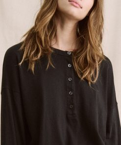 THE GREAT. Women’s Tees & Sweats The Shrunken Henley. | Almost Black