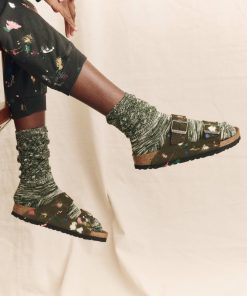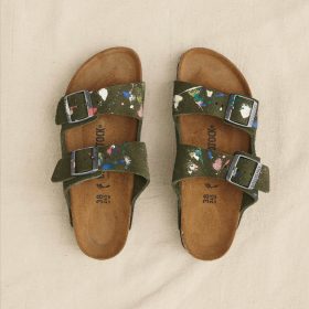 THE GREAT. Women’s Collection The Birkenstock Arizona With Hand Painted Tooled Tulip. | Velvet Gray With Multi