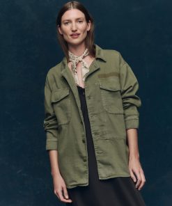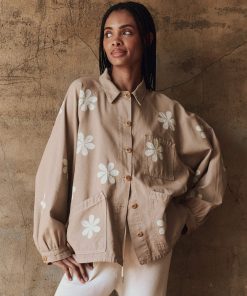 THE GREAT. Women’s Collection The Commodore Jacket With Daisy Stamp. | Khaki With Daisy Stamp