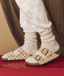 THE GREAT. Women’s Collection The Hand Stamped Birkenstock Arizona. | Latte With Cream Check