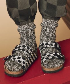 THE GREAT. Women’s Collection The Hand Stamped Birkenstock Arizona. | Black With Cream Check
