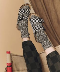 THE GREAT. Women’s Collection The Hand Stamped Birkenstock Arizona. | Black With Cream Check
