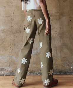 THE GREAT. Women’s Collection The Boxy Crew. Embroidered | Almost Black With Daisy Embroidery
