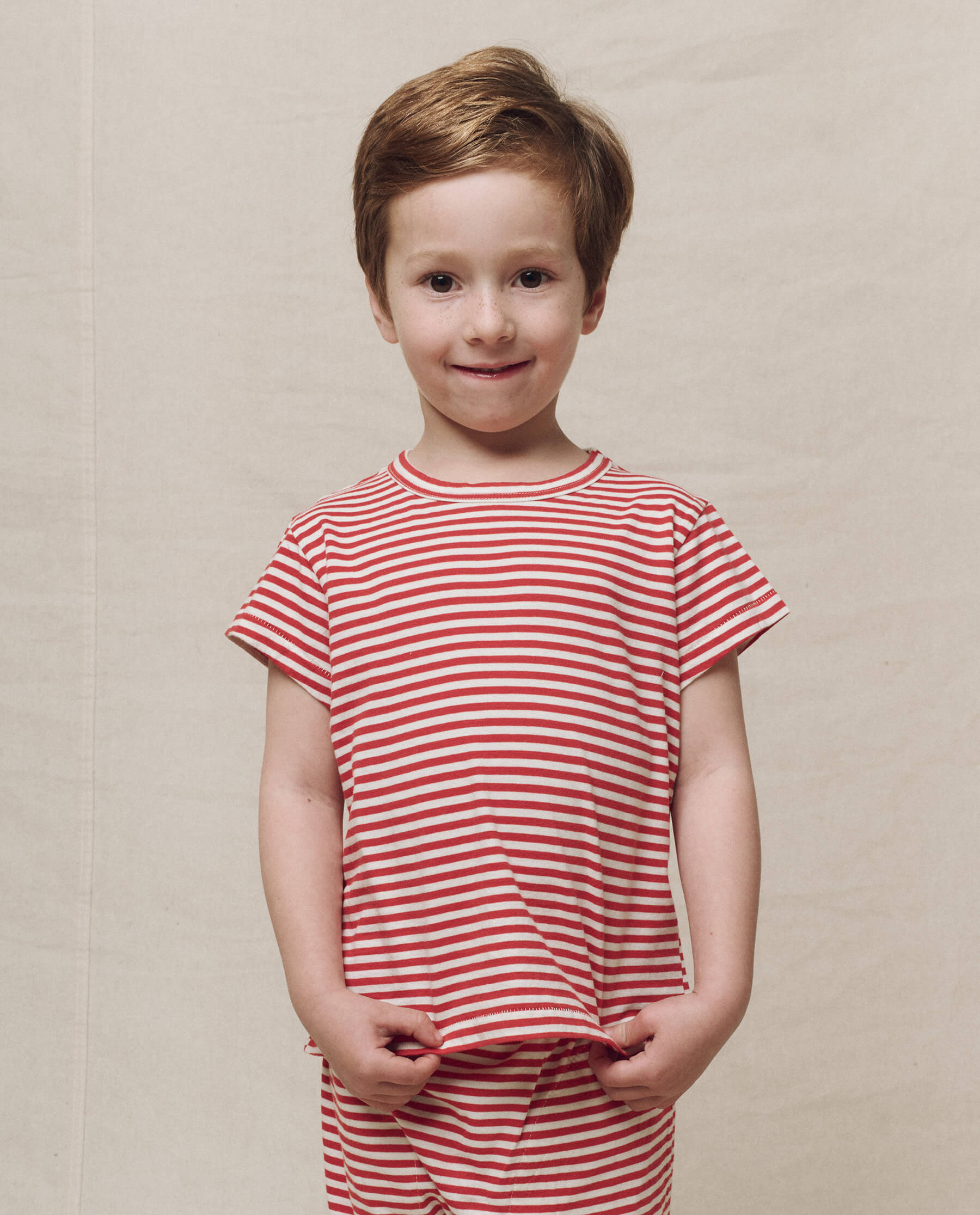 A littler version of our favorite Boxy Crew. The Little Boxy Crew is cut generously through the body with thoughtful tweaks like angled sleeves and a perfect length that hits just right. Cut from a two-color yarn dye stripe cotton jersey with a gentle garment wash that gives it the authentic vintage feel and soft hand we just love. Also available in women’s and men’s sizes for the family look we can't resist. Our knits are crafted here in L.A., ensuring beauty and uniqueness in that no two pieces are alike.