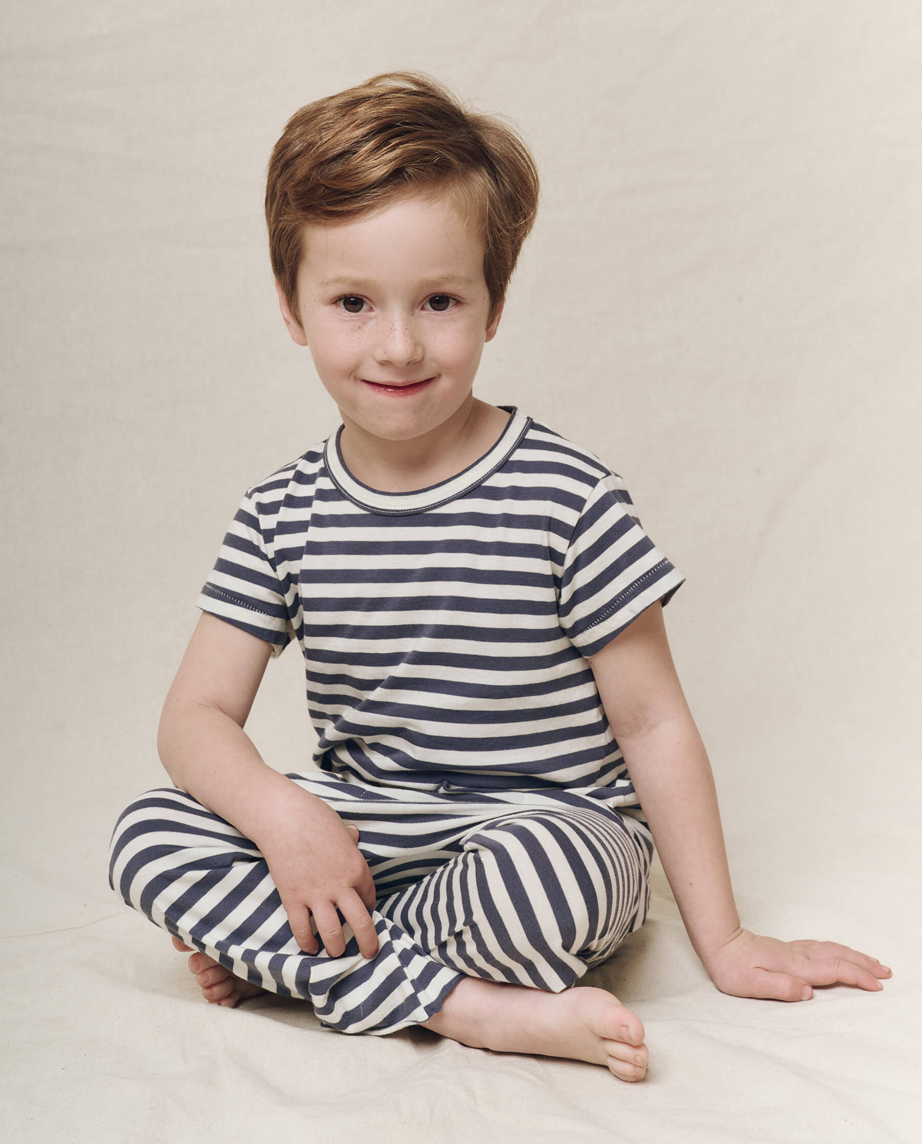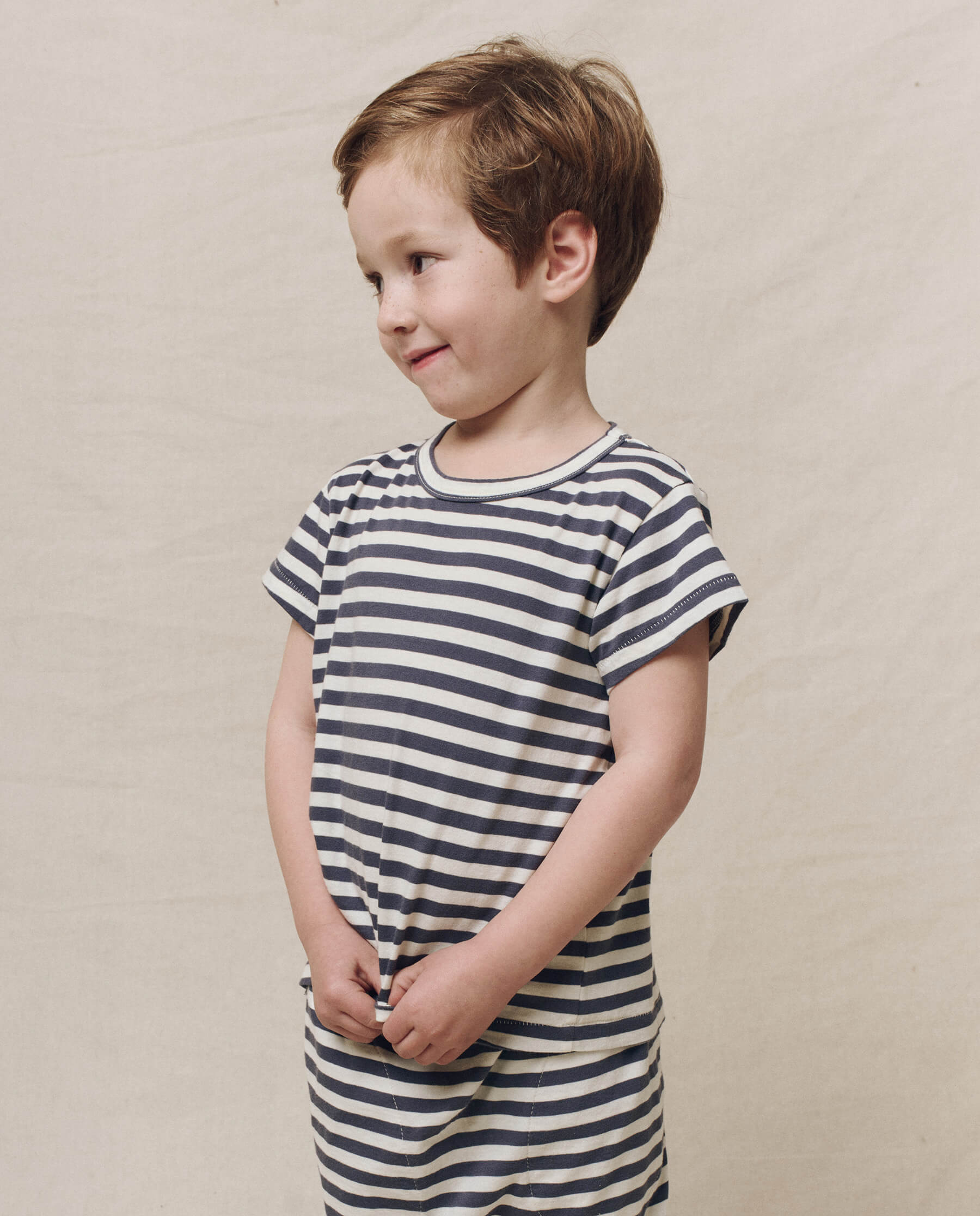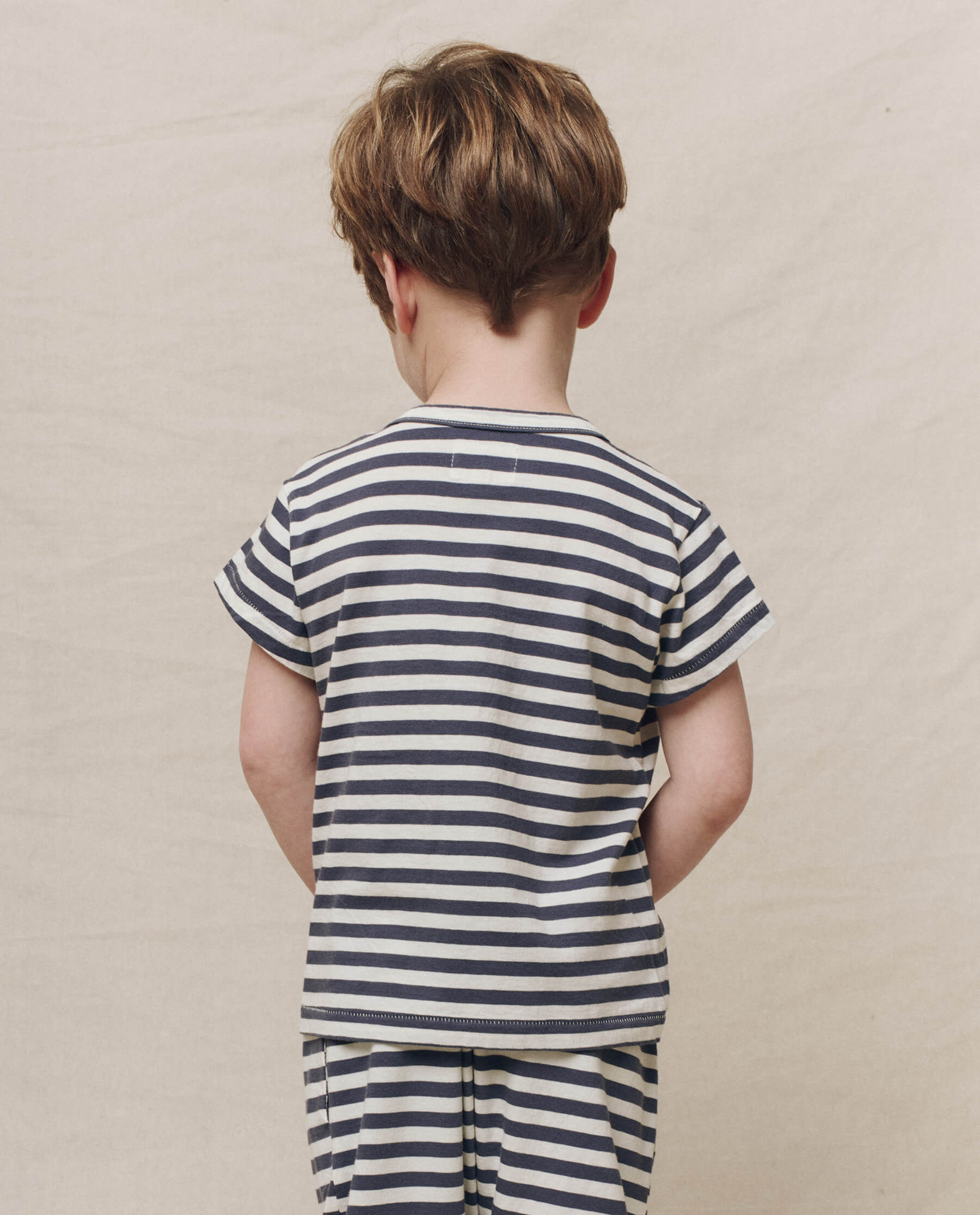 A littler version of our favorite Boxy Crew. The Little Boxy Crew is cut generously through the body with thoughtful tweaks like angled sleeves and a perfect length that hits just right. Cut from a two-color yarn dye stripe cotton jersey with a gentle garment wash that gives it the authentic vintage feel and soft hand we just love. Also available in women’s and men’s sizes for the family look we can't resist. Our knits are crafted here in L.A., ensuring beauty and uniqueness in that no two pieces are alike.