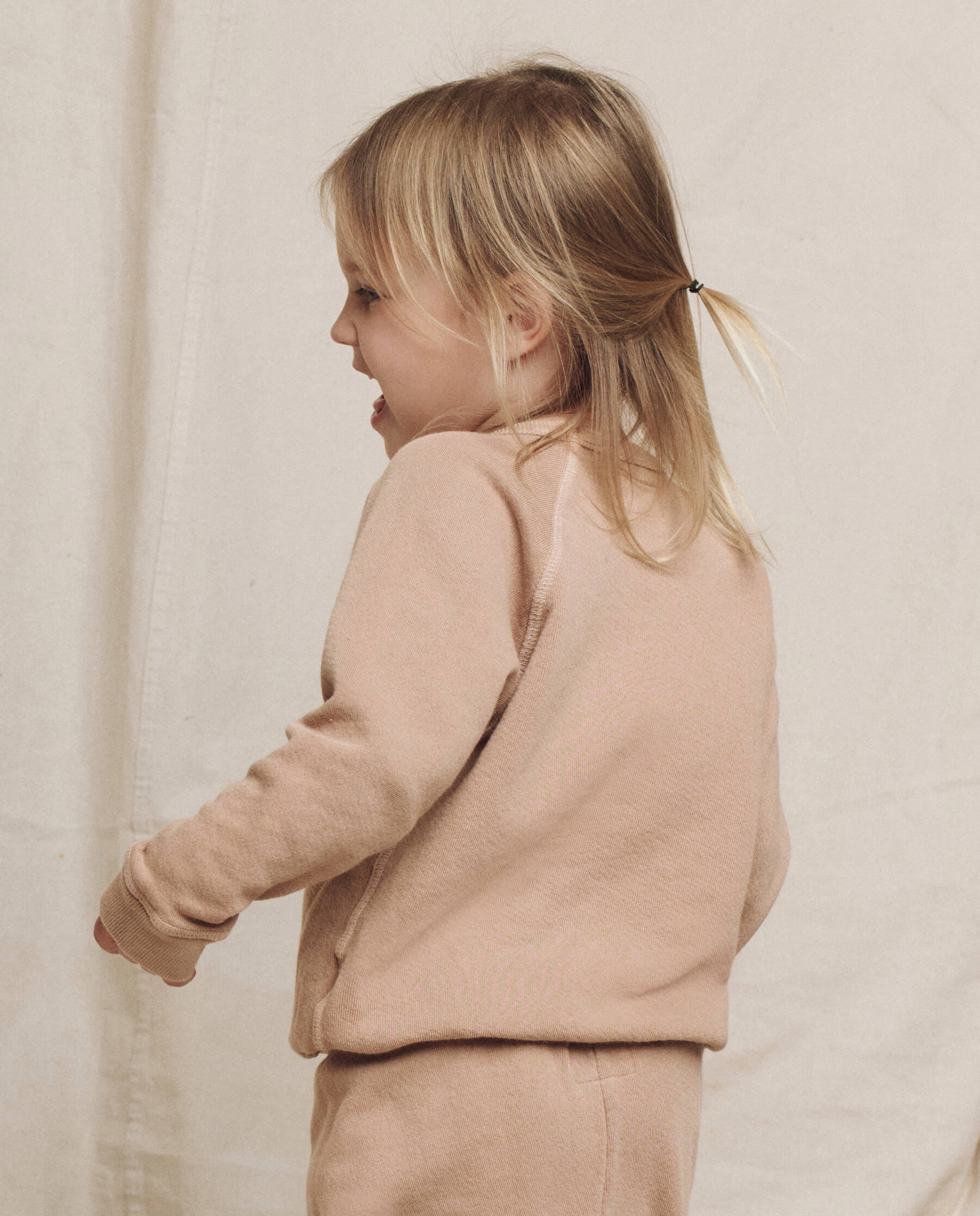 A little version of our beloved College Sweatshirt. Based on our favorite vintage sweatshirt body, this wardrobe staple features a lived-in vintage wash and signature slit on the left cuff. Made from a double washed terry, this relaxed sweatshirt also has the softest hand! Our knits are crafted in Los Angeles, ensuring authenticity, beauty and uniqueness in that no two pieces are alike.