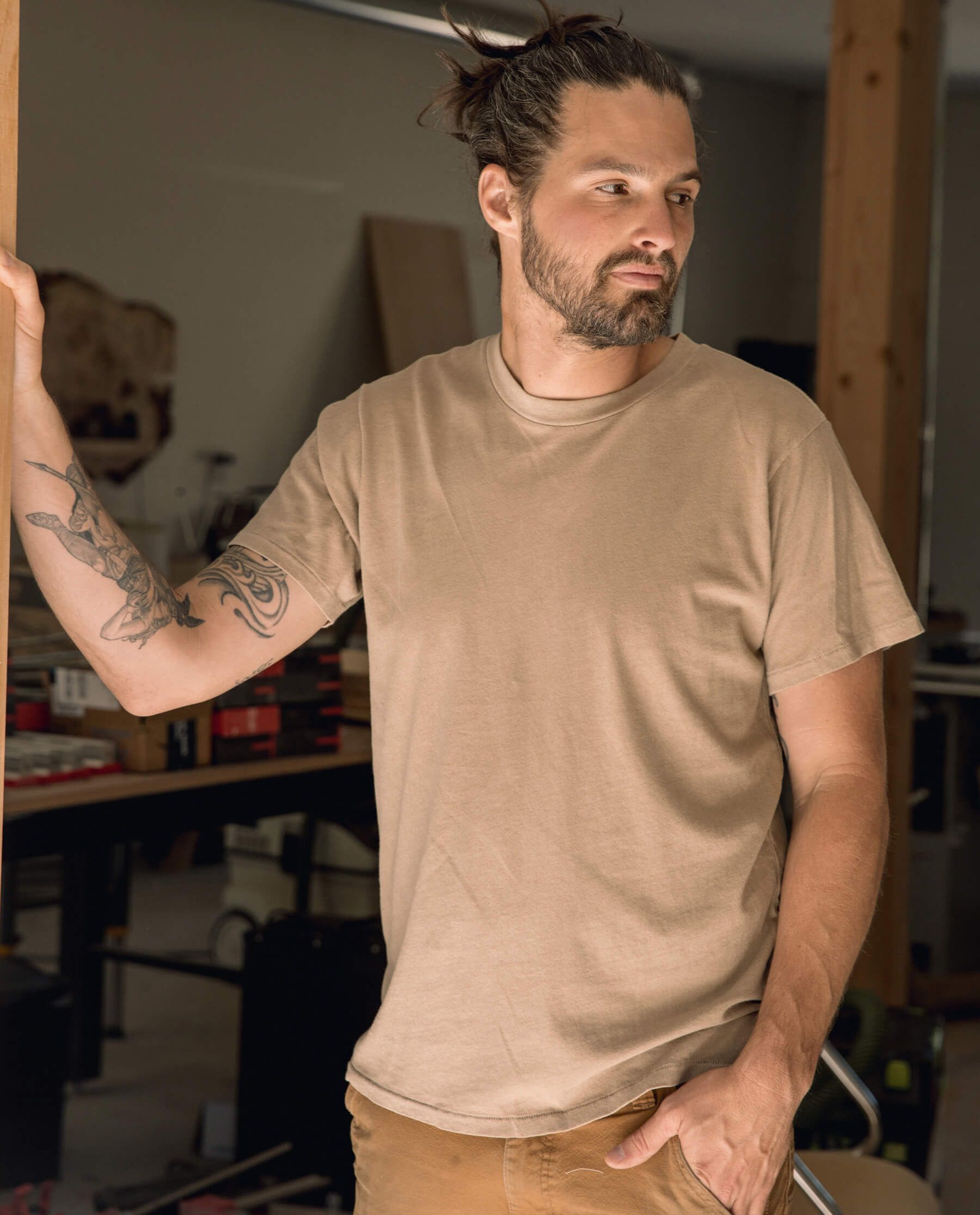 Inspired by a washed and worn vintage t-shirt that fits just right, The Men’s Slim Tee. is slightly more fitted and slimmer than The Men’s Boxy Crew., with the same amount of ease and comfort. Garment dyed and made in the USA, this tee develops (even) more character with every wear.