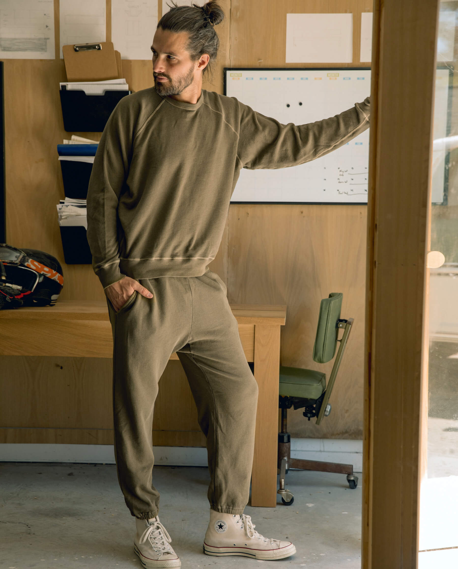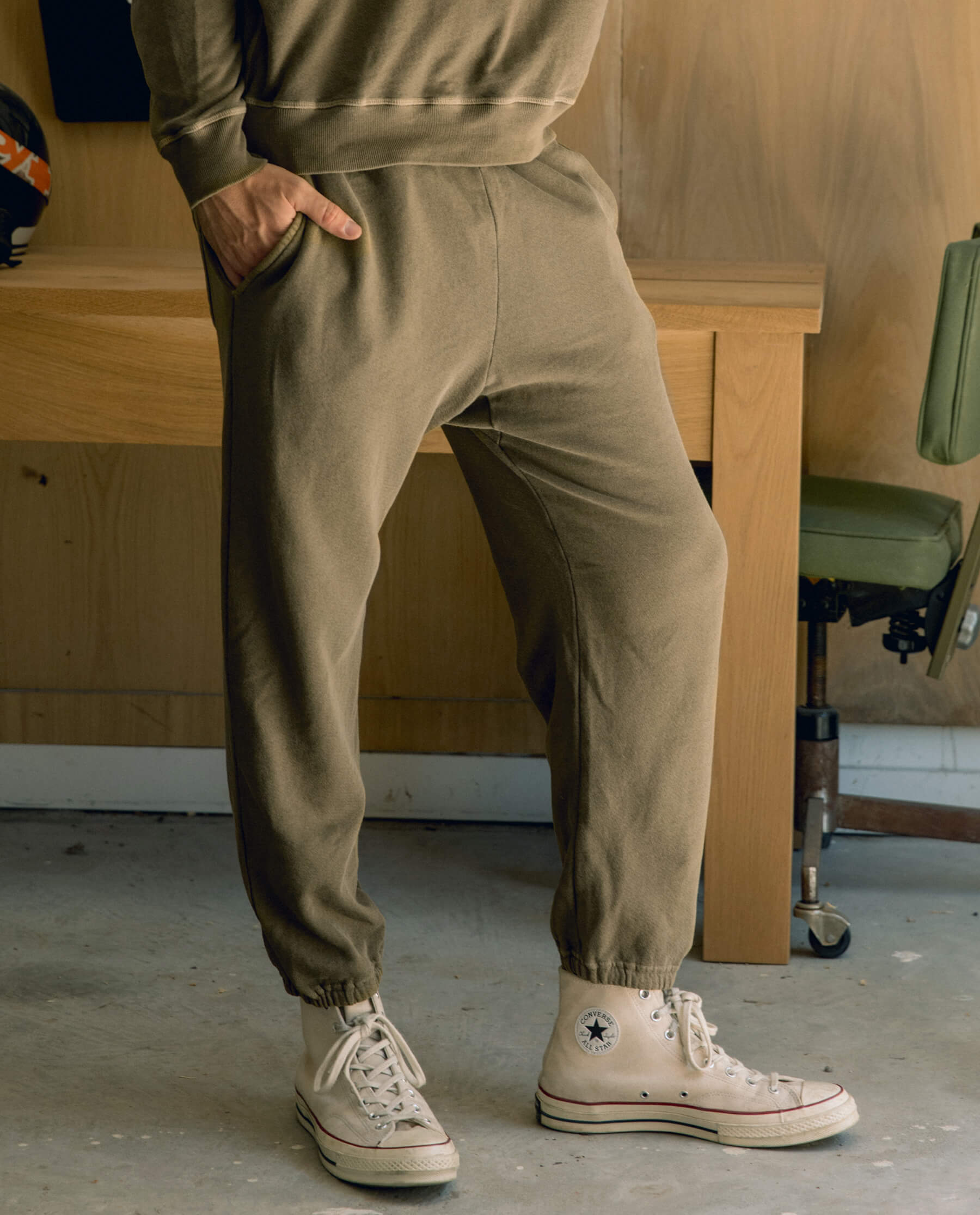 Inspired by vintage athleticwear, The Stadium Sweatpant. is a classic men’s bottom. Made of softly washed cotton, it features an elasticated waist with a hidden drawstring, elastic ankle cuffs, pockets on the side seam, and a patch pocket in back. Crafted locally here in Los Angeles, our process ensures the authenticity and uniqueness of every piece that will develop (even) more character with wear.