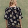 The Bower Top is designed with an easy, relaxed fit and a deep, open neckline for a laid-back feel. Circle-cut ruffles trim the neckline and sleeves, adding soft movement, while lantern-shaped sleeves and a swingy hemline bring a sense of flow. A delicate kissing front placket with small shirting buttons finishes the look. Made from airy crinkle cotton gauze in our Summer Dancing Floral print, it’s light, breathable, and ready for warm days ahead.