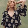 The Bower Top is designed with an easy, relaxed fit and a deep, open neckline for a laid-back feel. Circle-cut ruffles trim the neckline and sleeves, adding soft movement, while lantern-shaped sleeves and a swingy hemline bring a sense of flow. A delicate kissing front placket with small shirting buttons finishes the look. Made from airy crinkle cotton gauze in our Summer Dancing Floral print, it’s light, breathable, and ready for warm days ahead.