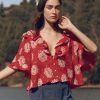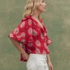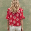 The Bower Top is designed with an easy, relaxed fit and a deep, open neckline for a laid-back feel. Circle-cut ruffles trim the neckline and sleeves, adding soft movement, while lantern-shaped sleeves and a swingy hemline bring a sense of flow. A delicate kissing front placket with small shirting buttons finishes the look. Made from airy crinkle cotton gauze in our Summer Dancing Floral print, it’s light, breathable, and ready for warm days ahead.