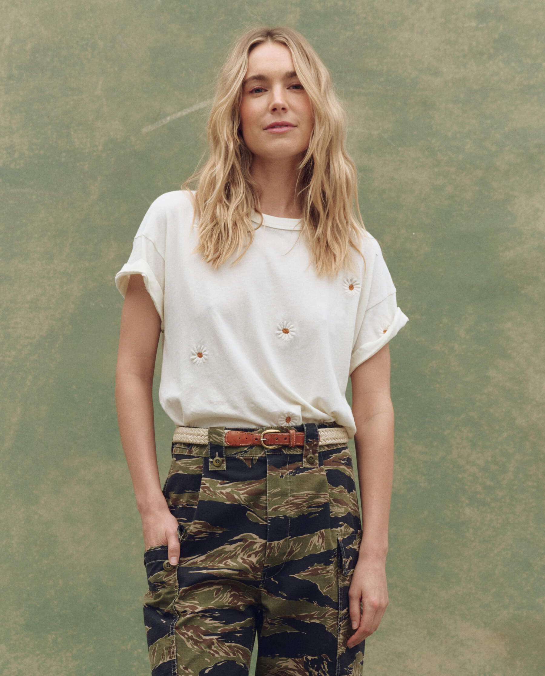Inspired by one of our most cherished vintage tees, this is bound to become your favorite, too. Cut generously through the body, this tee has flattering updates like angled sleeves and a not-too-long length that hits just right. Made locally in Los Angeles, with a special embroidered floating daisy technique, our process ensures beauty and uniqueness—no two pieces are alike.