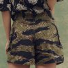 Rooted in authentic military heritage, this piece honors utilitarian design with timeworn character. It features a mid-rise, a square, boyish fit, and a slight pitch with a notched side hem that naturally flatters the leg. Functional details like 3D cargo pockets, a metal buckle and tab at the waistband for adjustable cinching, and a traditional button fly closure stay true to its origins. Cut from surplus military goods, it’s crafted from structured cotton camo sourced from the Vietnam War era, washed down for a broken-in hand-feel that speaks to its history.