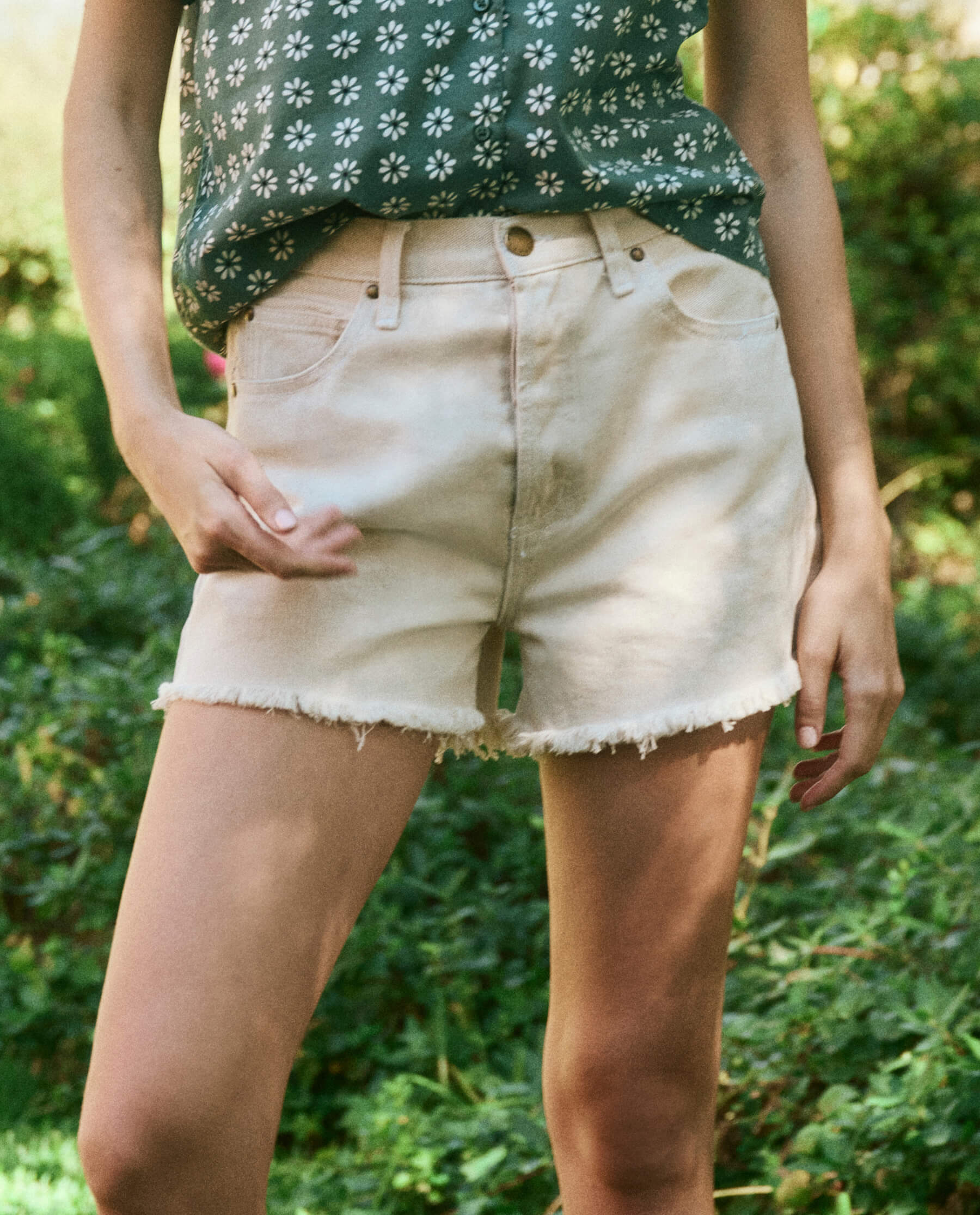 The Clark Short. is the denim staple every wardrobe needs. Washed and worn to perfection, these high-waisted shorts have a frayed hem that hits at the high thigh, classic five-pocket denim details, and an easy zip fly. Wear them with literally everything in your closet this Summer, from basic tees to Victorian-era blouses.