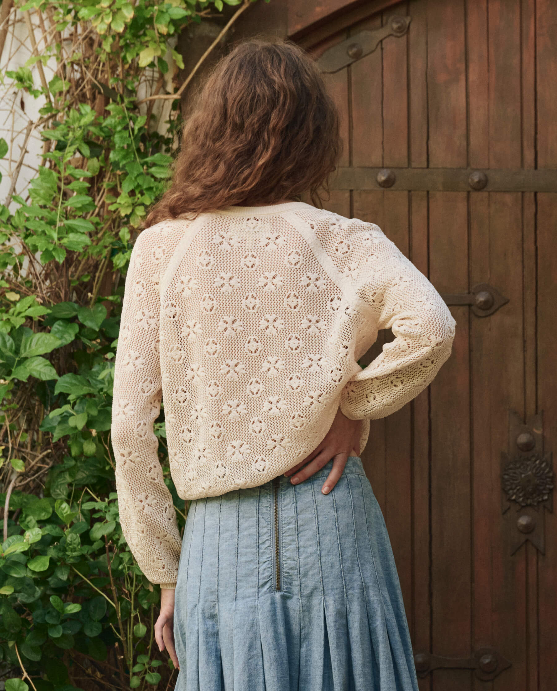 A lightweight, easy silhouette made from cotton yarn, The Crochet Cardigan is the perfect piece for the warmer months. The open texture evokes the timeless feel of vintage crochet, offering breathability and style. With shrunken proportions and a relaxed fit, this cardigan features a crew neckline, raglan armholes, and straight tapered sleeves for a laid-back, flattering shape. Delicate ribbed finishings and crochet buttons add a thoughtful, feminine touch. The perfect weight for packing, this cardigan is ideal for layering on breezy days and beyond.