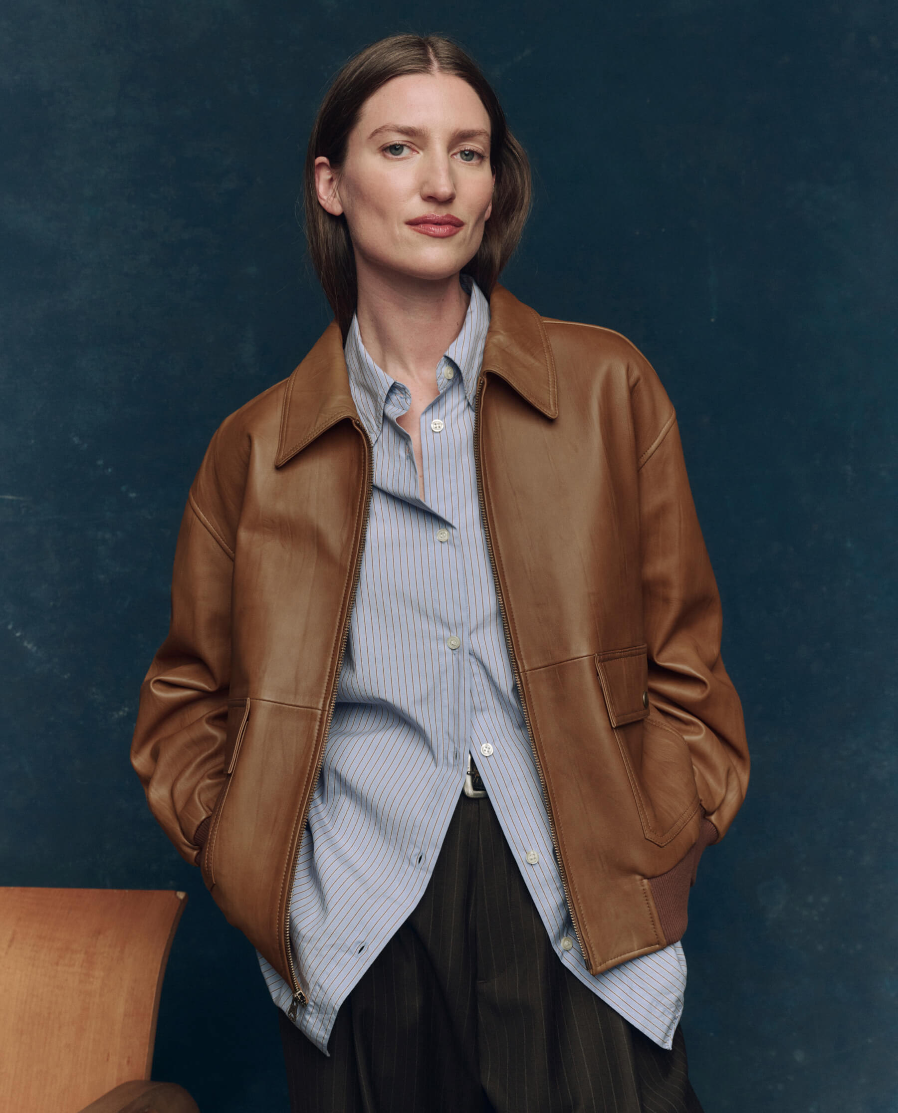 A reimagining of a timeless classic, The Flight Jacket draws inspiration from the utilitarian outerwear worn by WWI pilots in the early 1900s. Designed with intention and a sense of story, this jacket balances heritage details with a modern, lived-in feel. Crafted in a softly structured silhouette, it features a slouchy fit with dropped shoulders and a boxy shape that layers effortlessly. Patch pockets with metal snaps offer function with a hint of rugged charm, while a wide collar, front zip closure, and snug ribbed cuffs and waistband nod to its vintage roots. Inside, a peach satin lining adds a playful contrast—like the unexpected pop of a cherished heirloom passed down with love. Wear it over feminine dresses or your favorite worn-in jeans—it’s made to be styled your way.