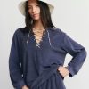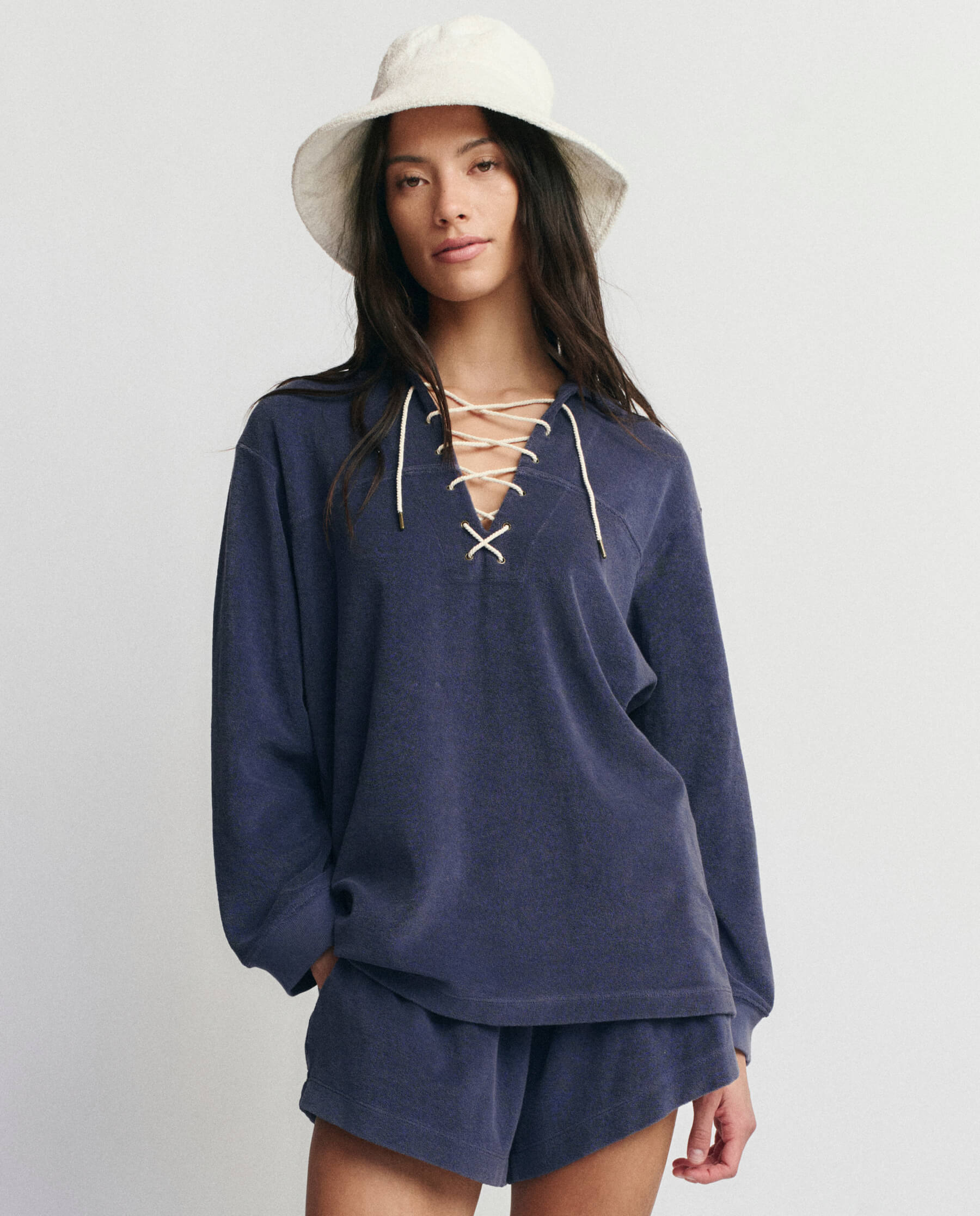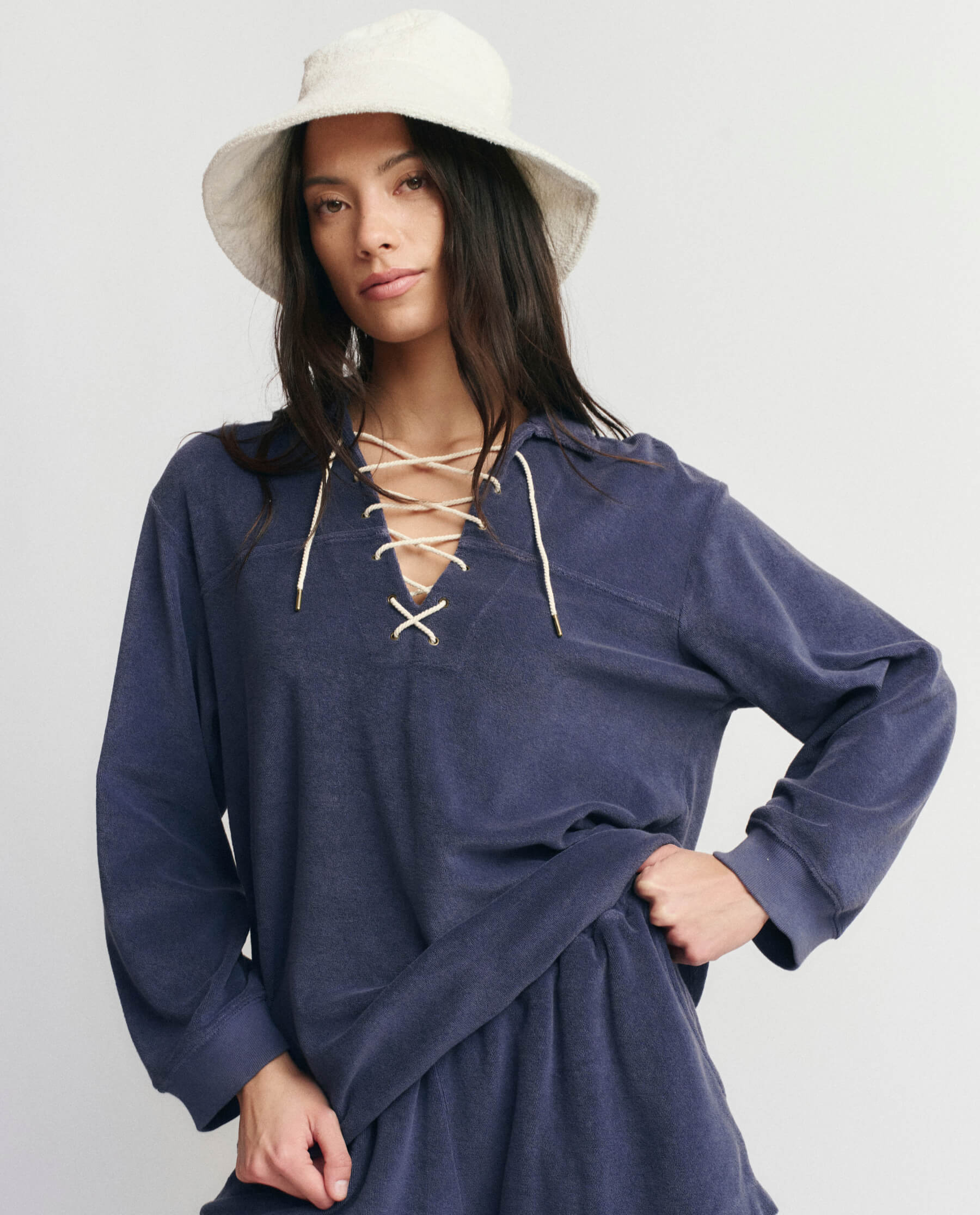 THE GREAT. Women’s Collection The Micro Terry Lace Up Tunic. | Vintage Blue