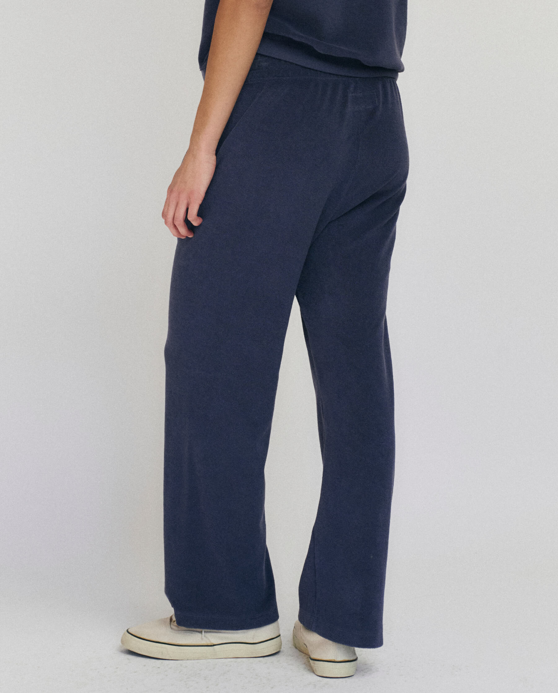 These full-length, straight-leg pull-on sweatpants offer a cozy, seamless fit with no side seams for ultimate comfort. The wide self-fabric waistband with stitched-through encased elastic adds a subtle athletic touch, while wide welt pockets provide effortless functionality. Updated with a Summer take on vintage knits in our cotton micro terry and a softly washed hand feel. Perfect for laid-back, everyday wear. Our knits are crafted here in L.A., ensuring beauty and uniqueness in that no two pieces are alike.