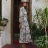 This easy pull-on dress features a flattering open neckline with delicate shirring and voluminous sleeves with elasticated cuffs for both style and comfort. Double needle stitching details highlight the raglan armholes, and the wide hemline adds balance. It comes with a separate wide waist tie with trapunto stitching for an option to cinch the waist. Made from lightweight textured cotton slub with Pre Fall’s Indigo Floral Print, the dress also includes a separate slip for added coverage.