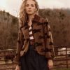 The Pasture Jacket. is ready for outdoor adventures. The cozy and relaxed zip-up jacket is crafted from the softest plush fabric and tells the story of wild horses running across a meadow. Distinguishing characteristics include a charming shirttail hemline, contrast stretch binding around the edges, a fluffy plush collar, billowy sleeves, and welt pockets in an earthy brown that pairs with literally everything in your closet.