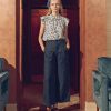 Introducing The Sculpted Trouser—a new fit crafted from cotton hemp denim. The high-waisted silhouette offers a snug fit through the hips, wide and loose legs that hit at the ankle. With pleated waistline details, side seam pockets, and back welt pockets, this pant pairs effortlessly with a boyish tee and sneakers for a high-low look or a low sandal for a casual spring vibe.