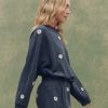 The Slouch Sweatshirt. is inspired by a treasured vintage find. This wear-with-everything piece has extra slouch, a straight shape, and fuller sleeves than The College Sweatshirt. Cut from a washed tri-blend terry fabric with a vintage inspired heathered look. Made locally in Los Angeles with a special embroidered floating daisy technique, our process ensures beauty and uniqueness—no two pieces are alike.