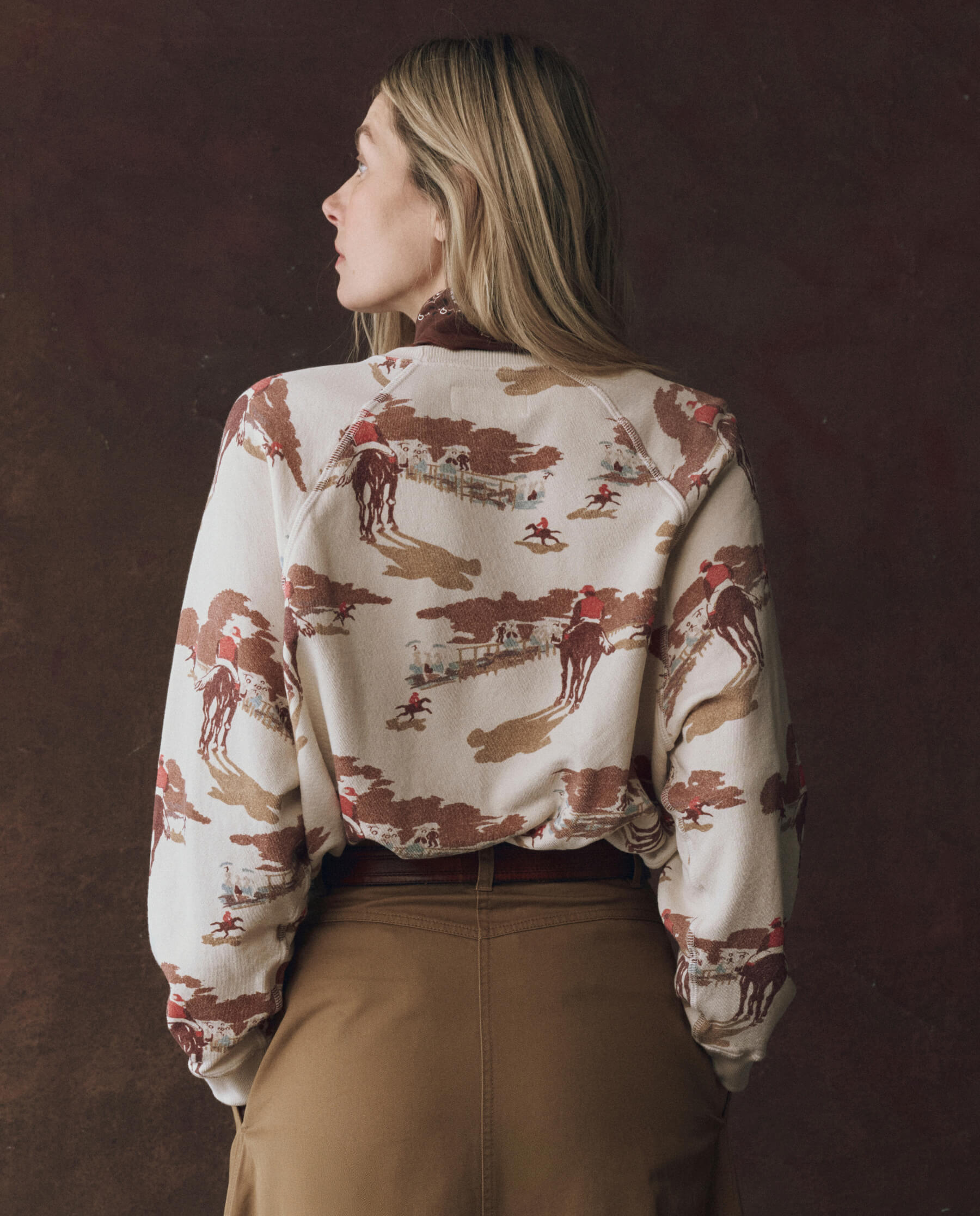 The Slouch Sweatshirt is cut with extra room through the body and fuller sleeves for a soft, slouchy fit. This version features the Riding Horses print in a washed, vintage-inspired application. Made locally in Los Angeles, every piece is one-of-a-kind.