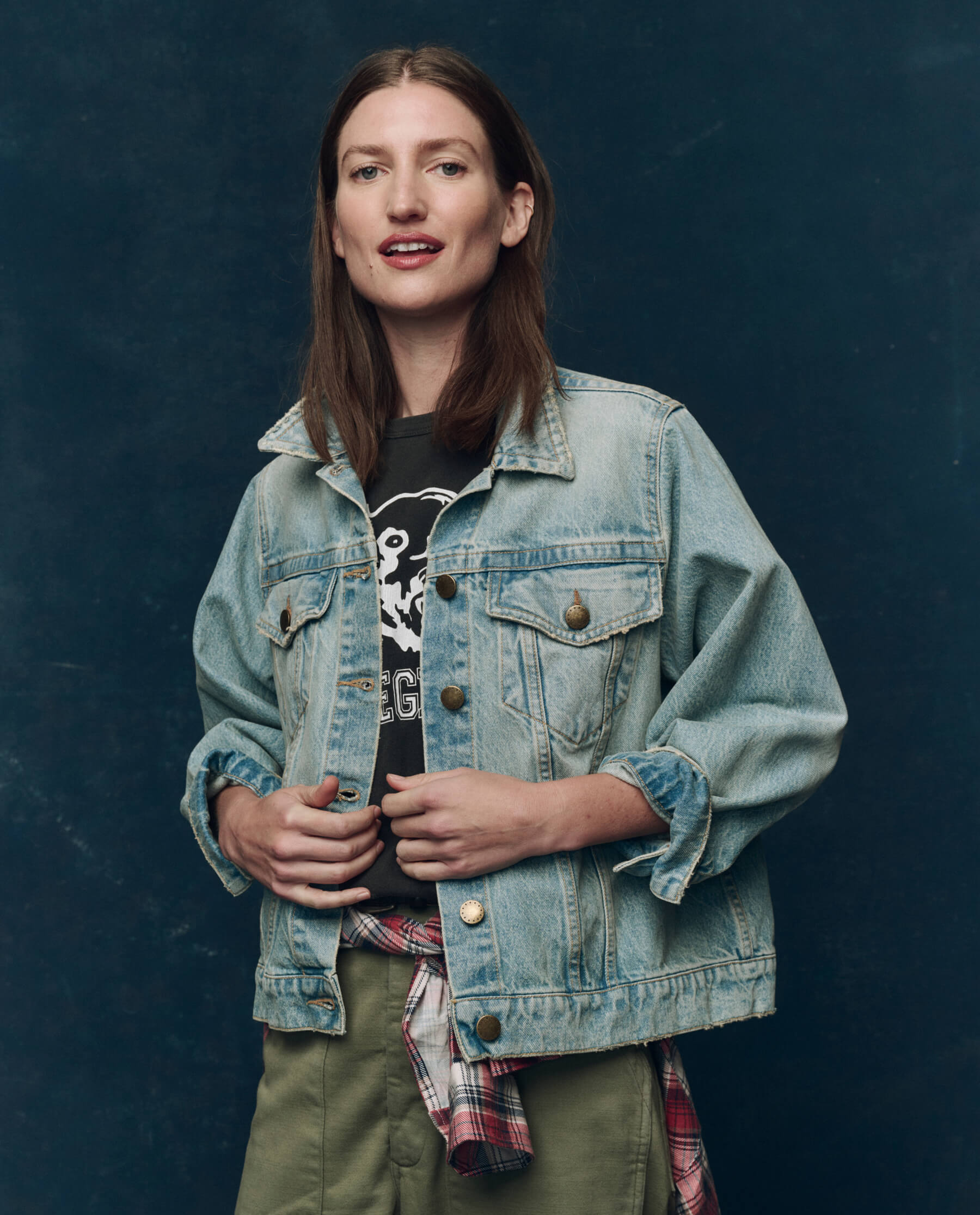The Slouchy Jean Jacket. is the kind of piece you’ll hold onto forever. Made-in-LA and vintage-inspired with classic details including oversized patch pockets, metal buttons, double-needle stitching details, and the perfect vintage wash. This jacket is designed with a relaxed, boxy shape worn by both workers and rockers, refined in the 1960s with its clean lines, signature V-shaped seams, and flat pockets. Wear yours with a white tee and denim for a classic look we love. Part of our collectors capsule in a heavy weight rigid denim made of 100% cotton that is washed in a classic shade of indigo and worn to perfection.