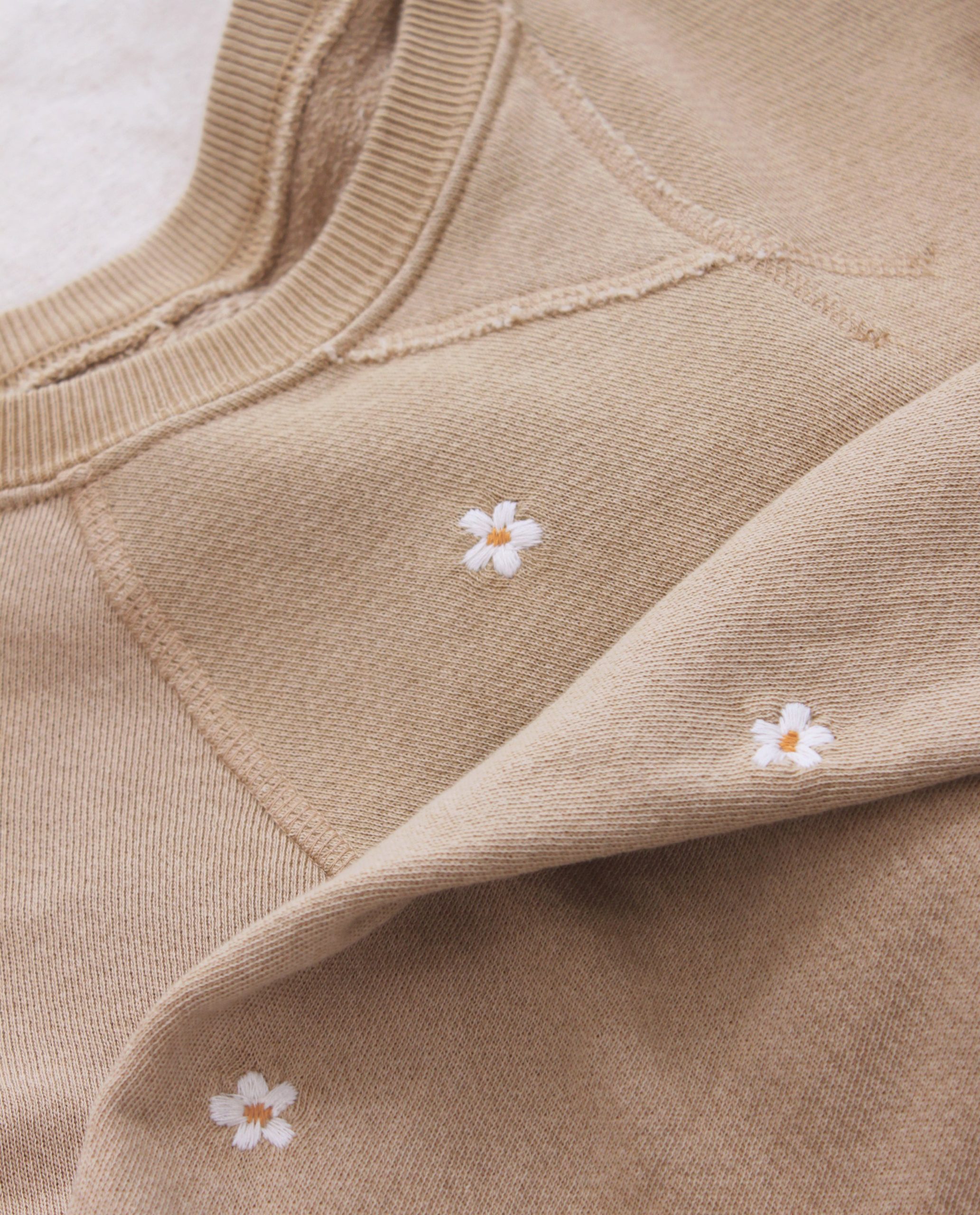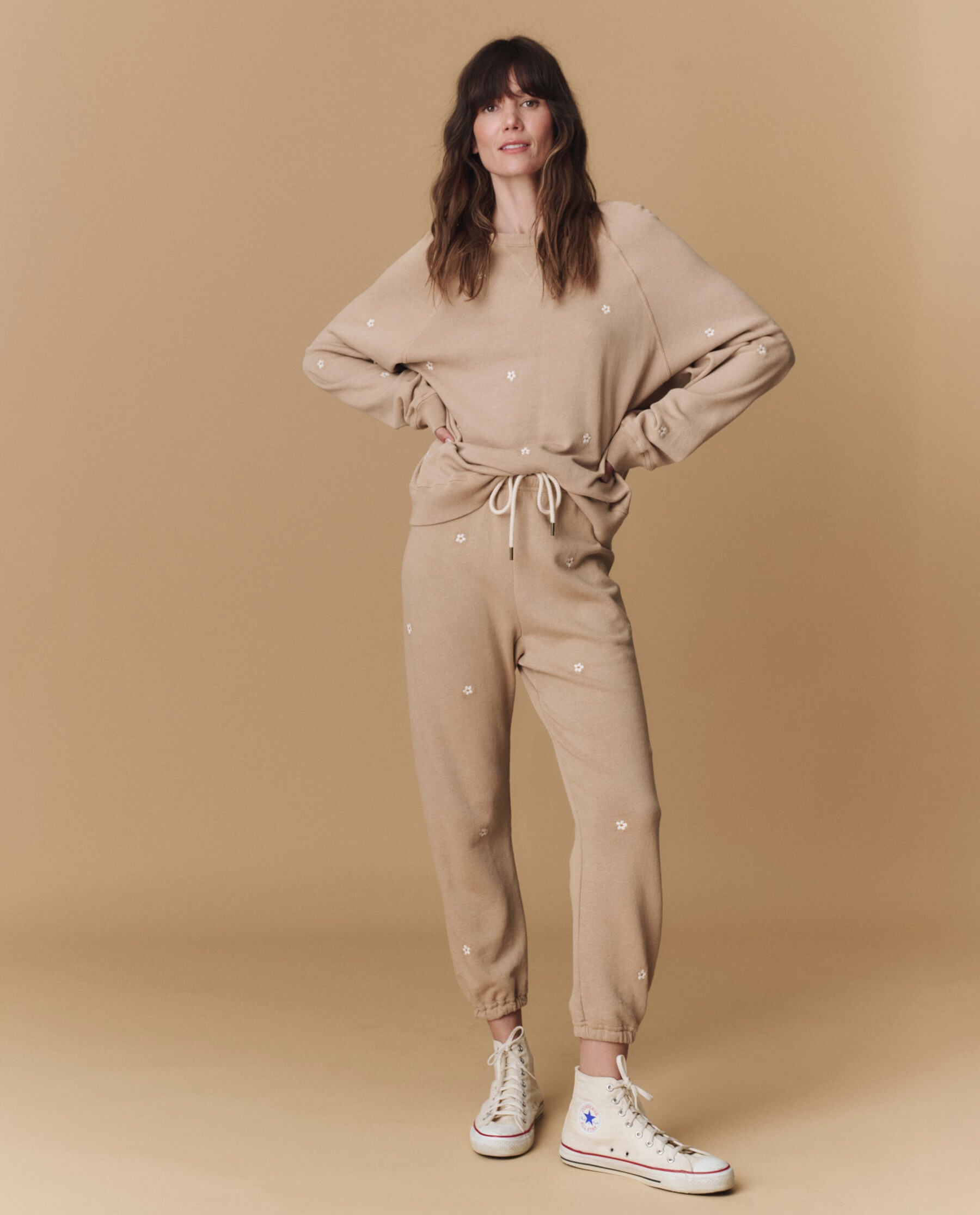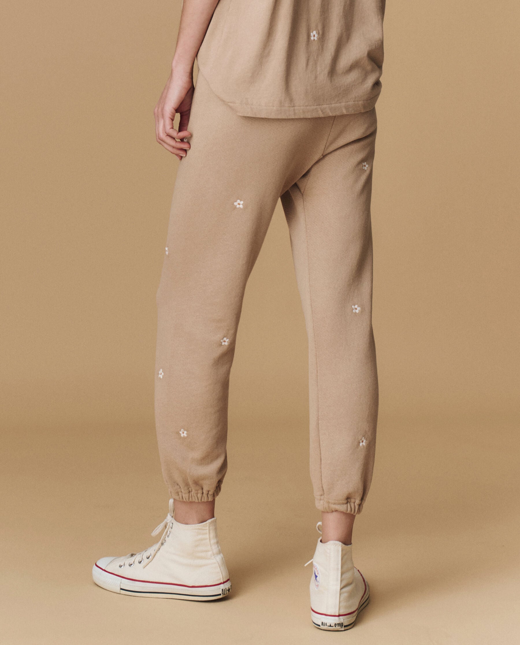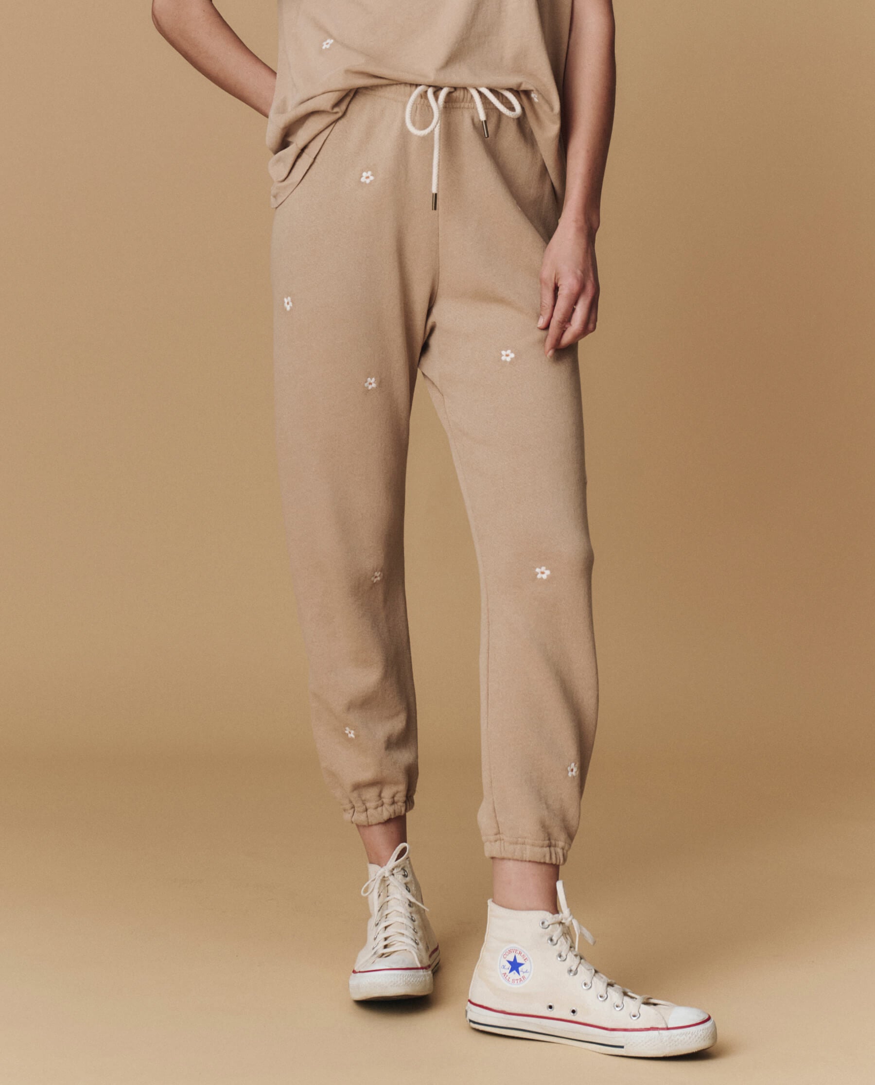 THE GREAT. Women’s Collection The Stadium Sweatpant. Embroidered | Khaki With Daisy Embroidery