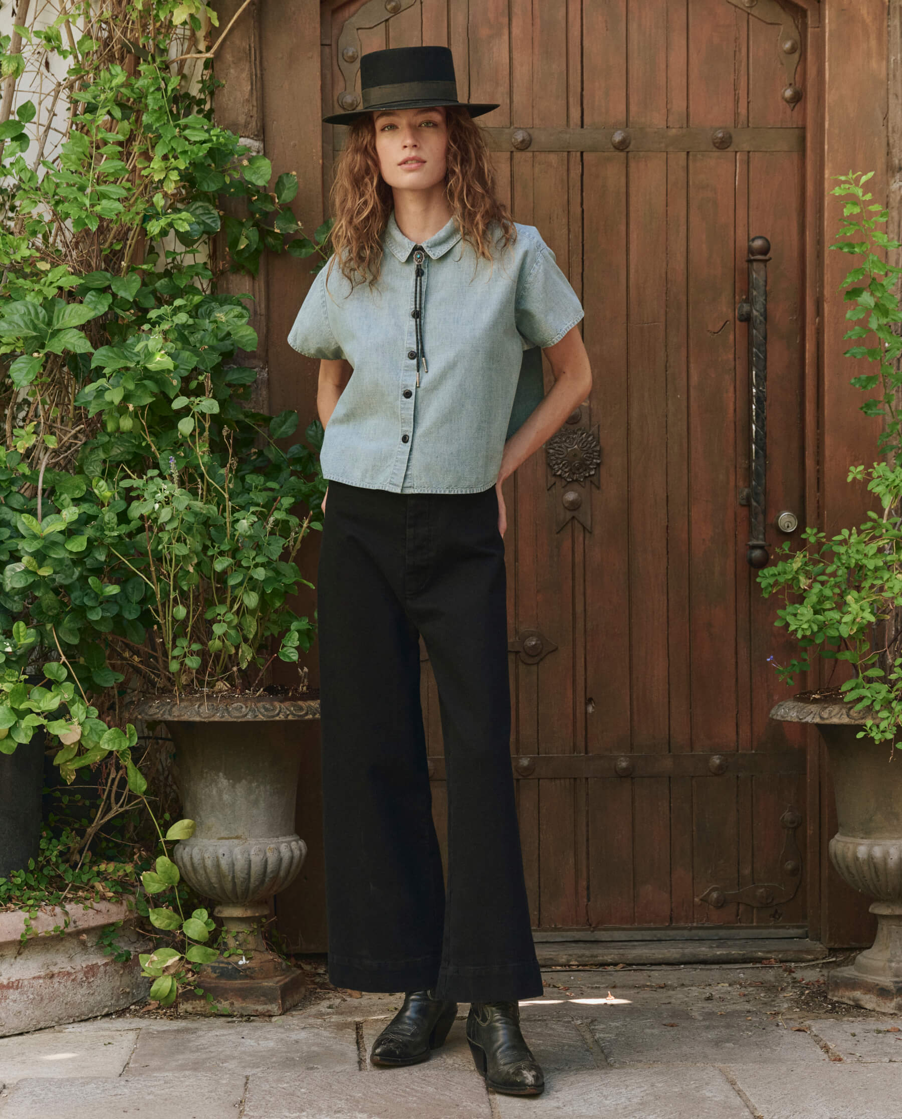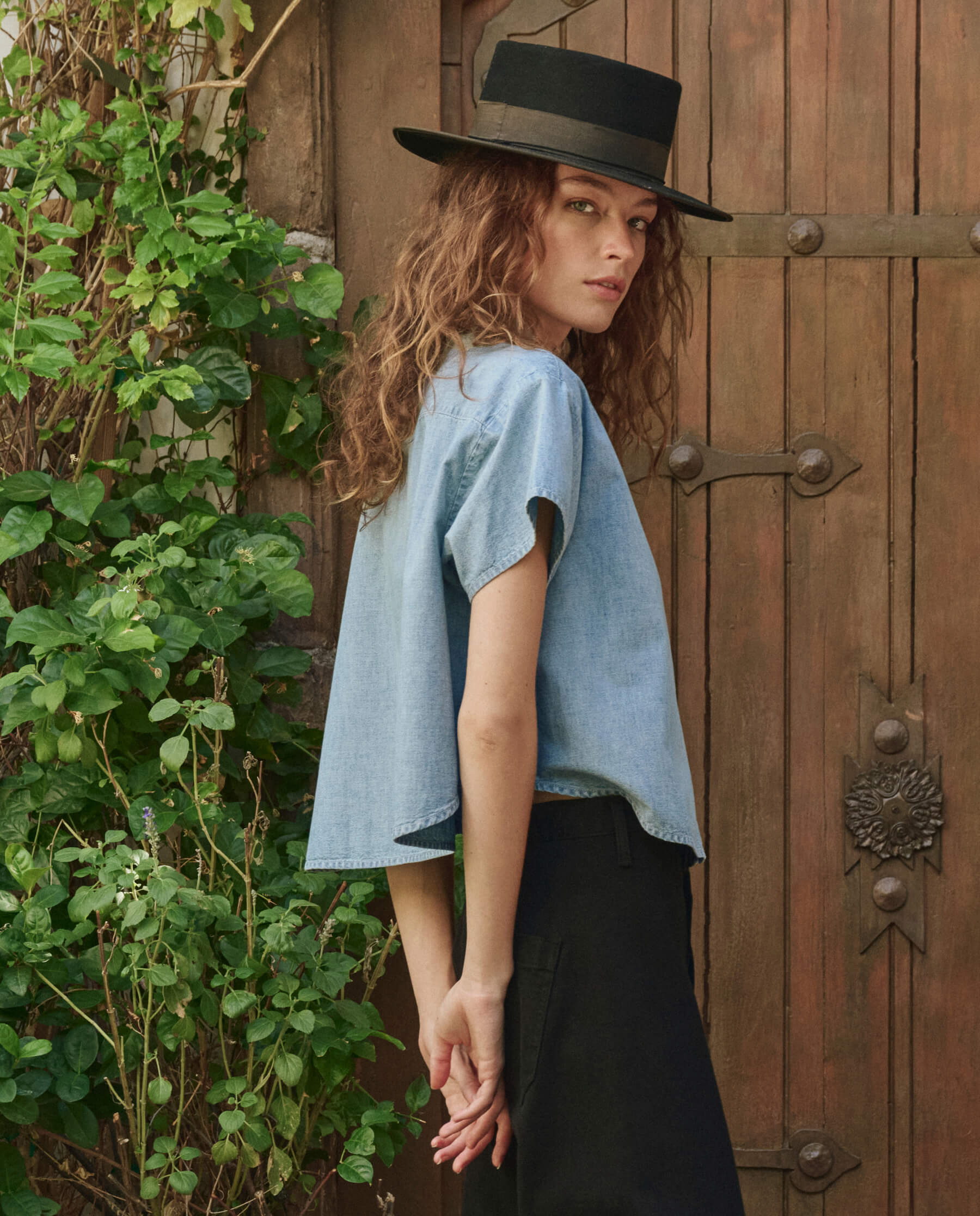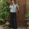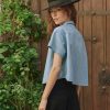 This short-sleeve button-down top features a cropped, boxy silhouette with a swingy, effortless drape. Designed for easy styling, it blends structure with movement, making it a versatile staple for any wardrobe.