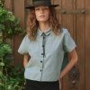 This short-sleeve button-down top features a cropped, boxy silhouette with a swingy, effortless drape. Designed for easy styling, it blends structure with movement, making it a versatile staple for any wardrobe.