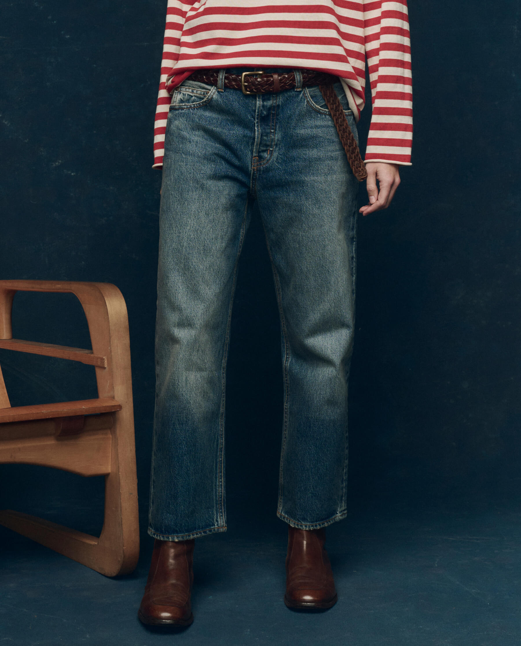 The Wayne Jean. is our favorite Made-in-LA slouchy denim body. Inspired by—and named for—Emily’s father, who has been a pillar of the brand’s nostalgic roots, this is a beloved fit that gets better with age…just like its namesake. This jean fits easy through the leg, is cropped to the perfect length with a clean hem, and is washed and worn to get the hand feel we love. Wear The Wayne Jean. true to size at the natural waist or size up to wear them oversized and slung low, like borrowing his favorite pair. Part of our collectors capsule, this pair is cut from a heavy weight rigid denim made of 100% cotton, washed in a classic shade of indigo and worn to perfection.