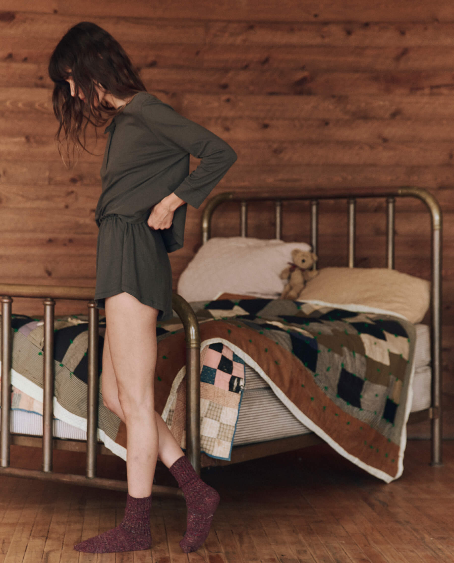 Crafted from super soft jersey, The Tap Short. has a gathered waistband, swingy, easy leg openings with small side slits.