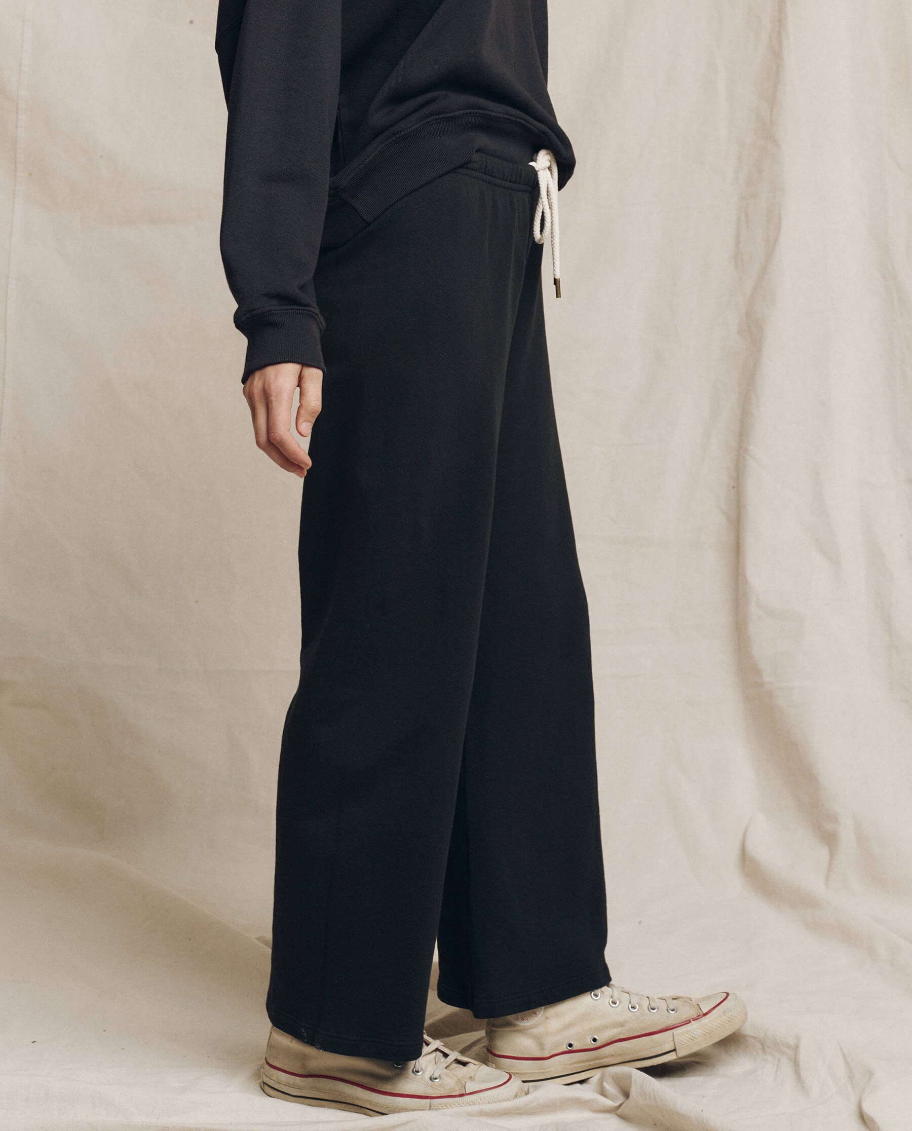 Introducing The Lap Sweatpant, the latest new comer to add to our core essentials. Featuring a wide and cropped straight leg with a clean finished hem, we love it worn slung low or higher on the waist depending on personal fit preference. The elasticated waist band and hidden draw cord make it an easy-to-wear. Handcrafted locally in Los Angeles, our process ensures beauty and uniqueness – no two pieces are alike.