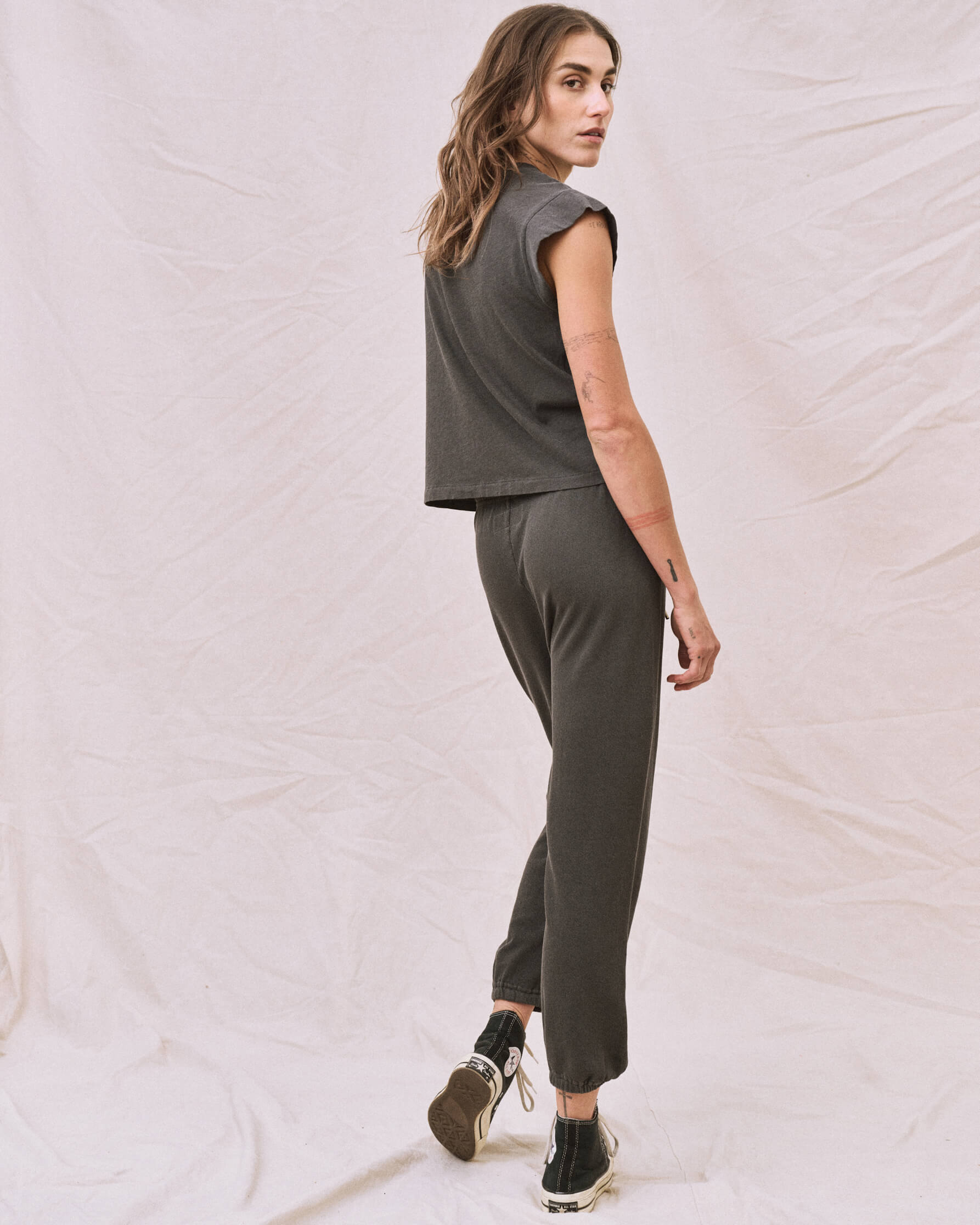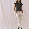 The Peak Shoulder Tee is an essential of core collectibles—a reimagining of the classic crewneck fit with updated proportions and shortened pitched sleeves. Cut to flatter, we especially love this new tee tucked into high-waisted denim and billowing skirts so the sleeves still steal the show. Handcrafted locally in Los Angeles, our process ensures beauty and uniqueness—no two pieces are alike.