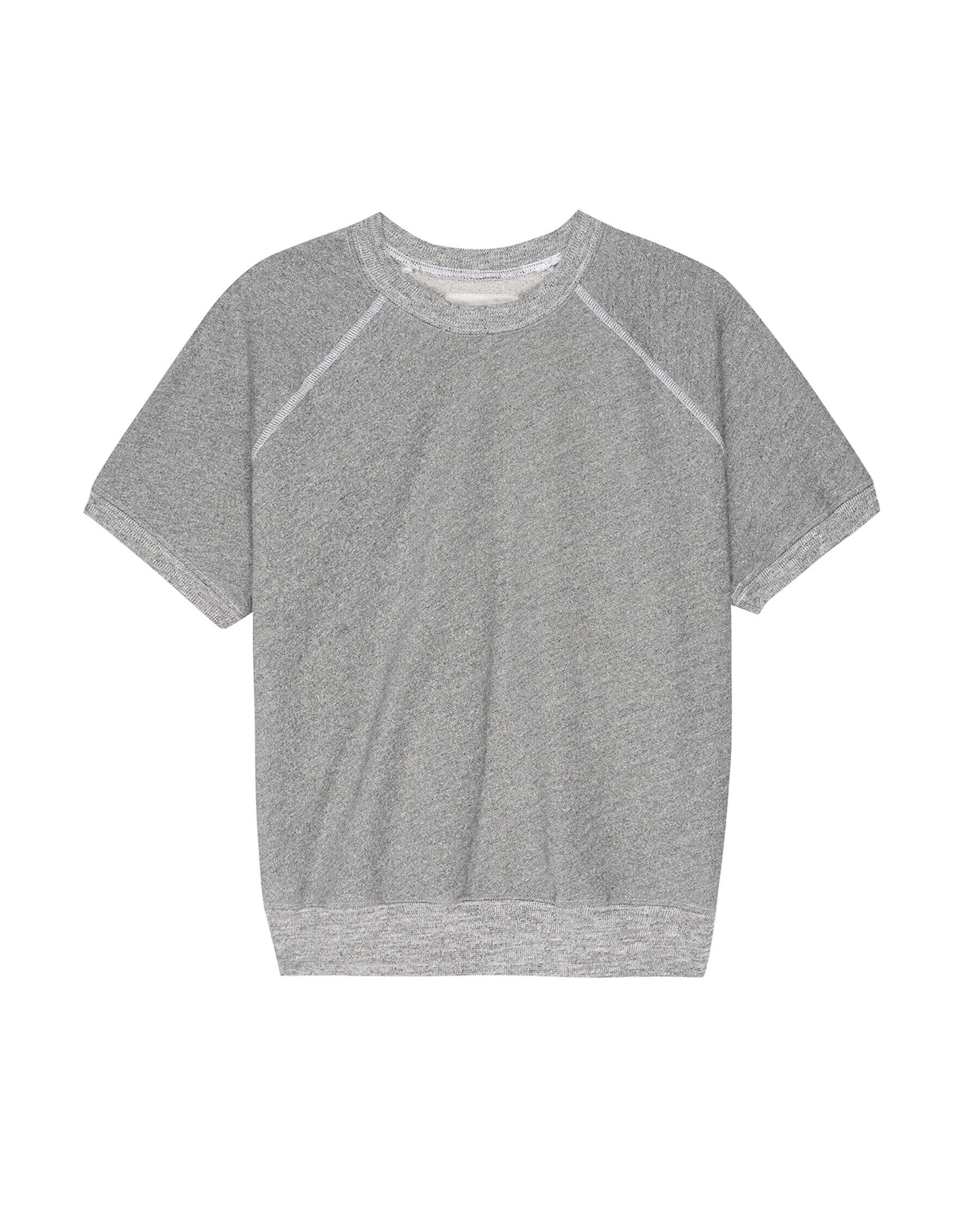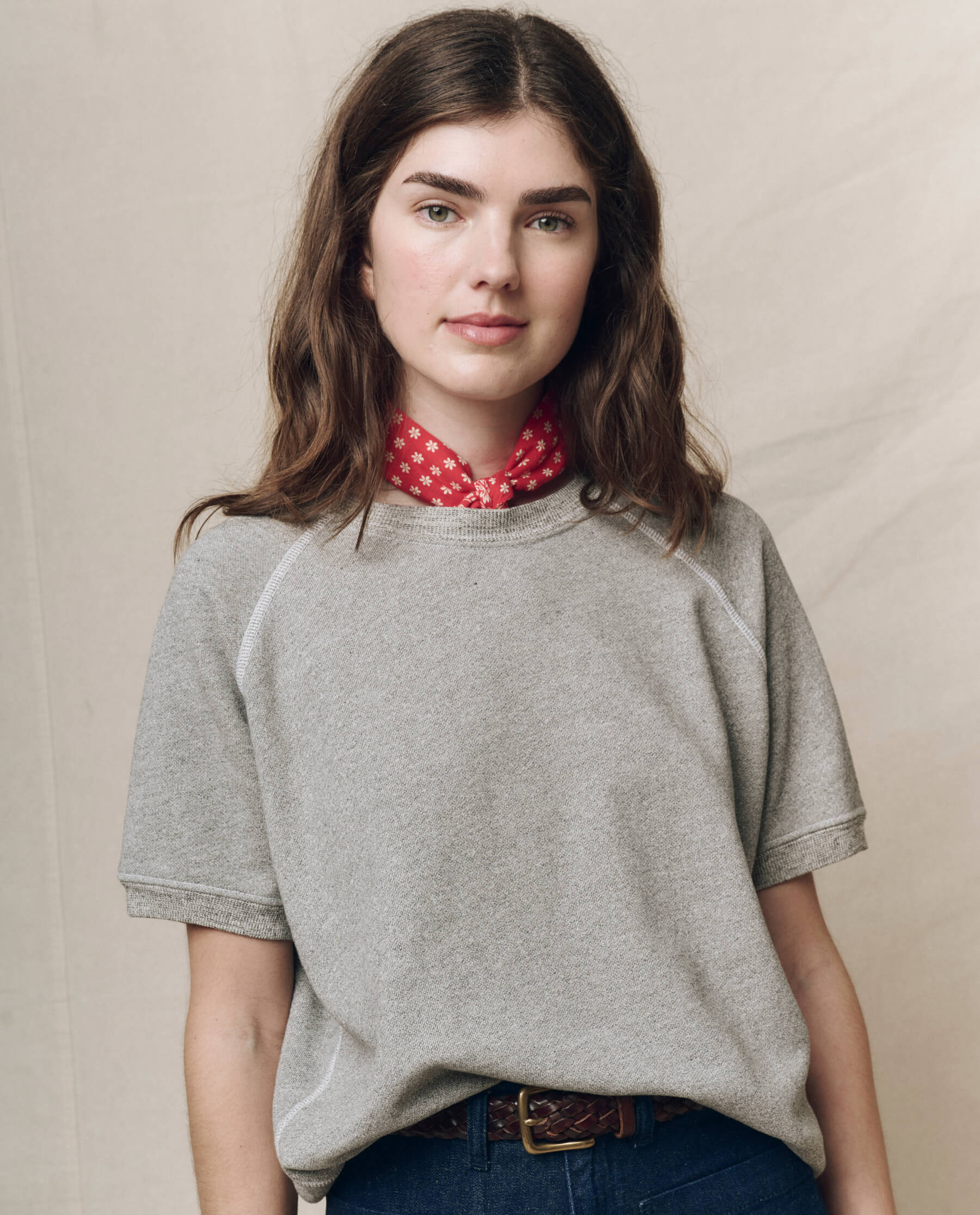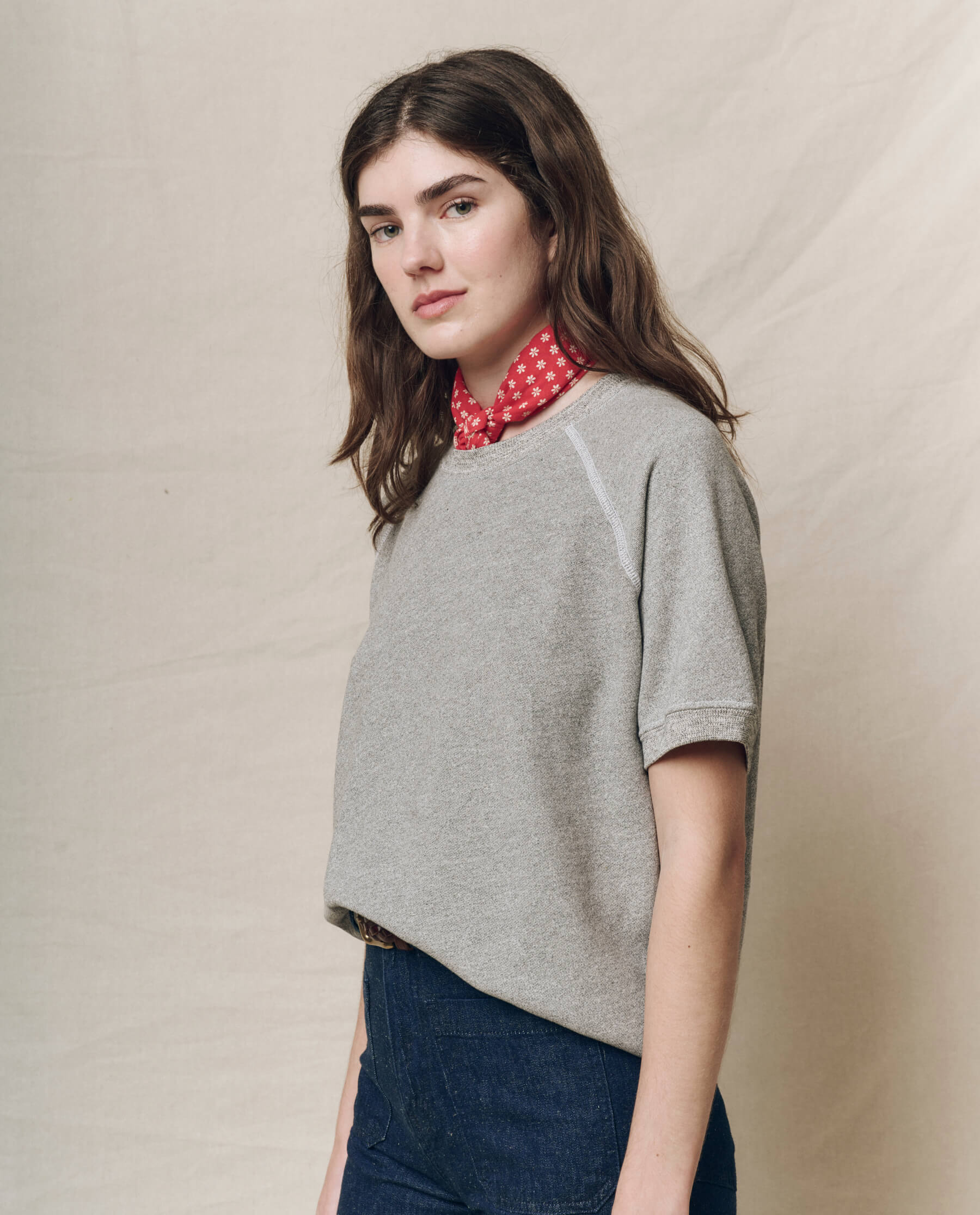 The Short Sleeve Sweatshirt. is a perfect transitional piece into warmer weather. Designed with a slouchy and easy fit with cropped short sleeves, a classic crew neck, raglan sleeves, and rib finishings that pairs easily with shorts, sweats, or your favorite jeans.Handcrafted locally in Los Angeles, our process ensures beauty and uniqueness—no two pieces are alike.