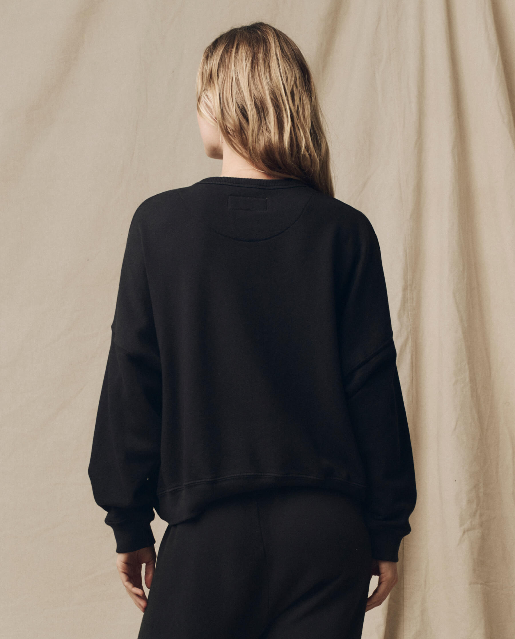 A relaxed fit with a dropped shoulder, cropped body length and clean cuffs with no distressing make this piece feel like the perfect deadstock sweatshirt flea market find. Authentic vintage details like a half moon in the back collar add extra character. Handcrafted locally in Los Angeles, our process ensures beauty and uniqueness—no two pieces are alike.