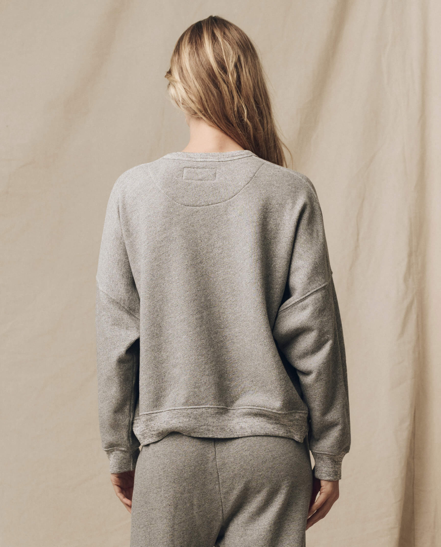 A relaxed fit with a dropped shoulder, cropped body length and clean cuffs with no distressing make this piece feel like the perfect deadstock sweatshirt flea market find. Authentic vintage details like a half moon in the back collar add extra character. Handcrafted locally in Los Angeles, our process ensures beauty and uniqueness—no two pieces are alike.