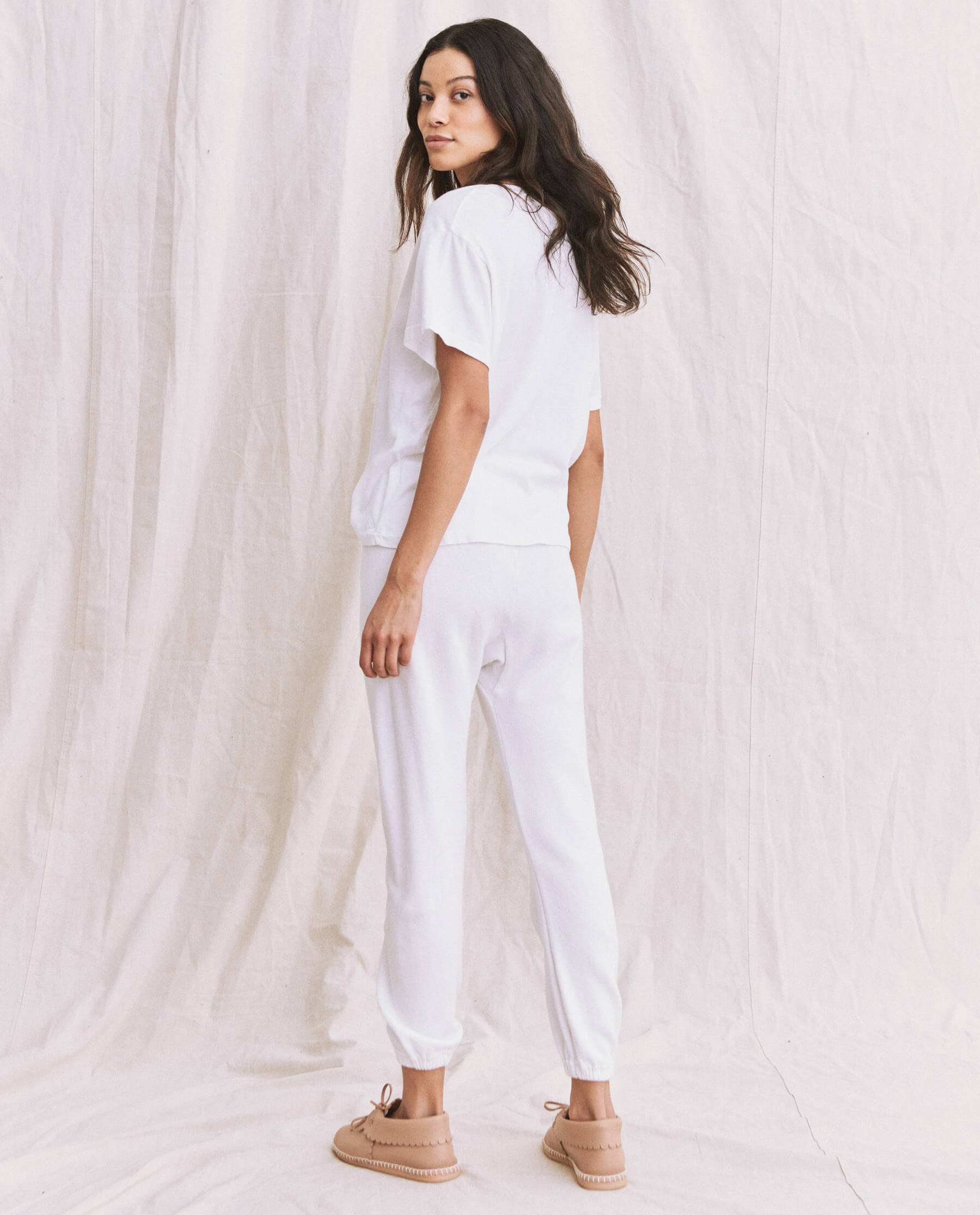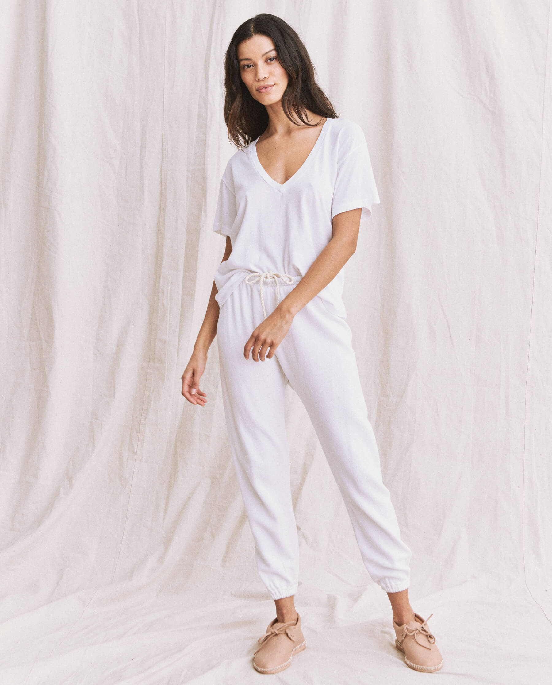 We merged our favorite design details to build the perfect tee. The V Neck. is inspired by our favorite V neck vintage tees that we have collected to make this feel slouchy yet charming with the best boxy fit, not-too-long length, deep plunging neckline, and the most flattering pitched sleeve shape. Handcrafted locally in Los Angeles, our process ensures beauty and uniqueness—no two pieces are alike.