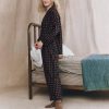 This sleep pant is crafted from the softest 100% cotton in the Medallion Print. It features a wide leg, slightly dropped rise, an elastic high waist and piped cuff. Wear them with its matching sleep top for mornings at home.