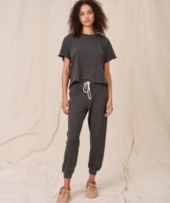 Women’s Tees & Sweats The Long Sleeve Crop Tee. – Washed Black – The Great. | Washed Black